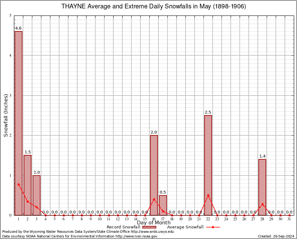 THAYNE (488868) May Average and Extreme Daily Snowfall AMounts (1898-1906) To index page for THAYNE