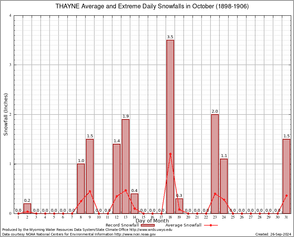 THAYNE (488868) October Average and Extreme Daily Snowfall AMounts (1898-1906) To index page for THAYNE