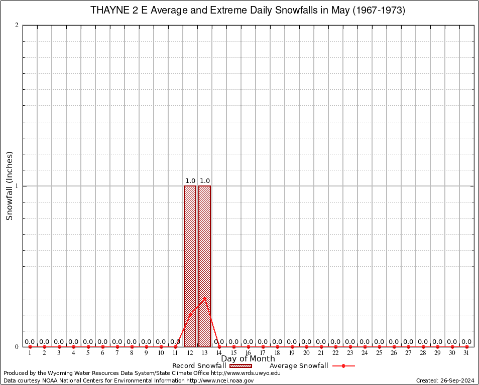 May Average and Extreme Daily Snowfall AMounts (1967-1973)