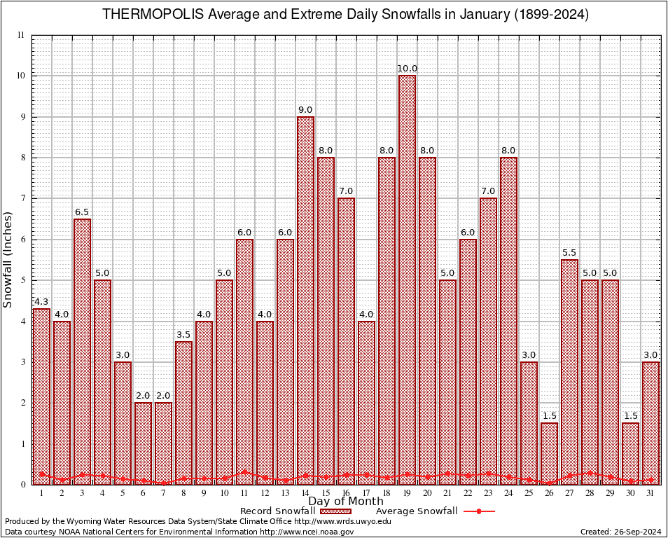 January Average and Extreme Daily Snowfall AMounts (1899-2024)