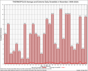 Record Extreme and Average Daily Snowfall (1899-2024)