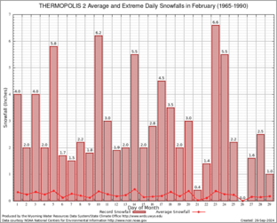 Record Extreme and Average Daily Snowfall (1965-1990)