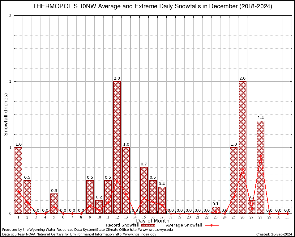 December Average and Extreme Daily Snowfall AMounts (2018-2024)