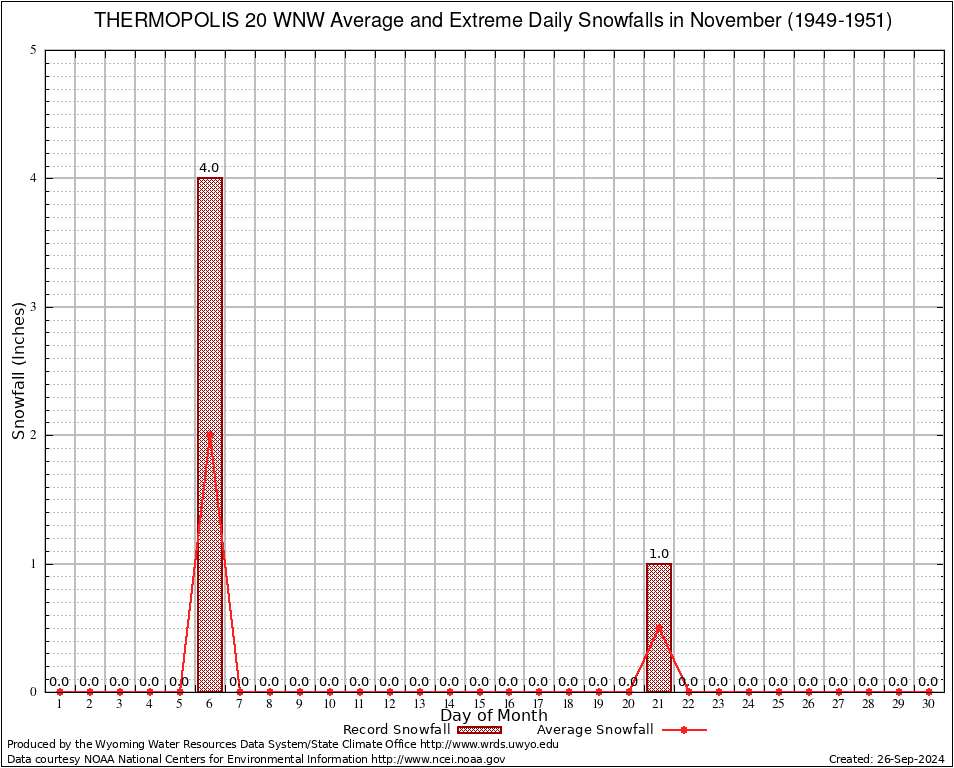 November Average and Extreme Daily Snowfall AMounts (1949-1951)