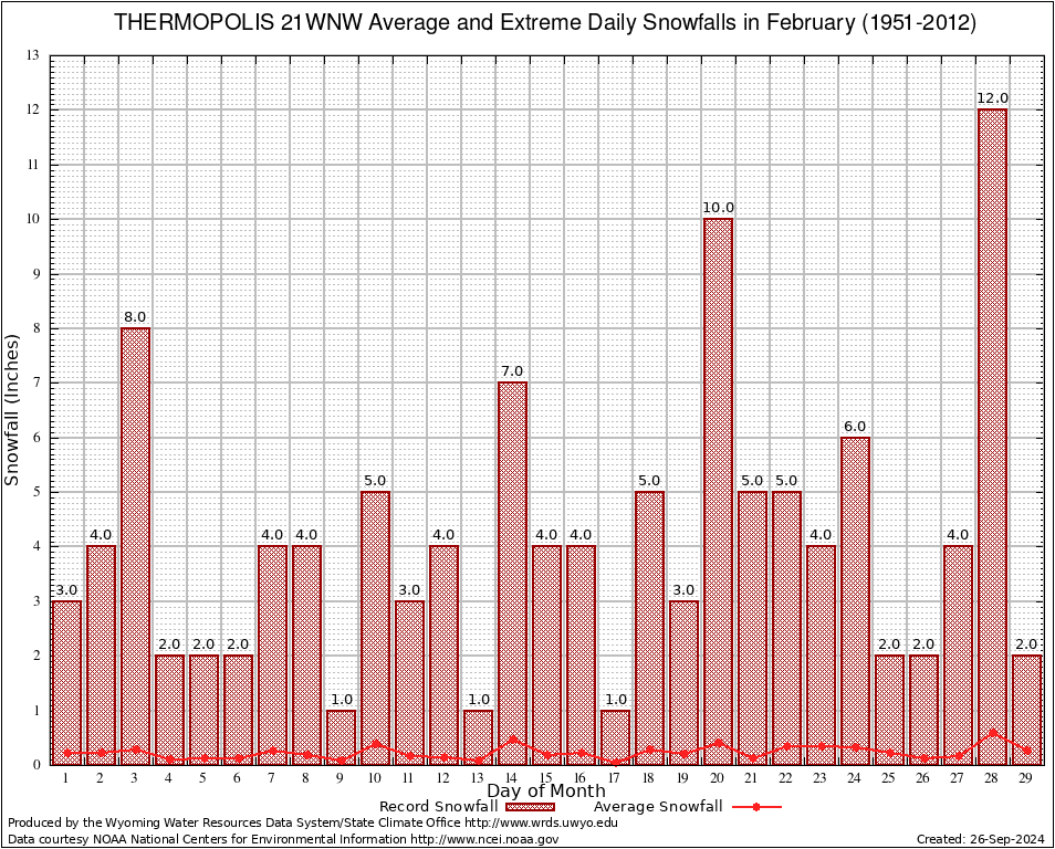 February Average and Extreme Daily Snowfall AMounts (1951-2012)