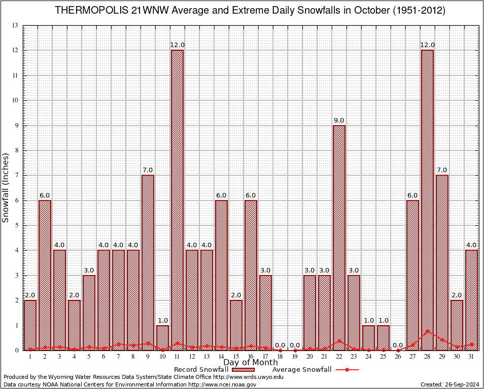 October Average and Extreme Daily Snowfall AMounts (1951-2012)