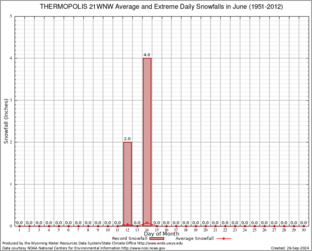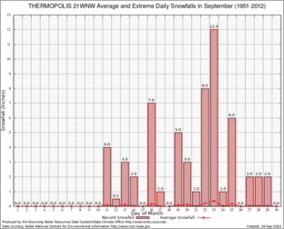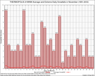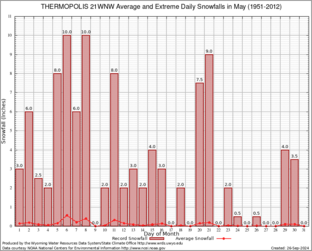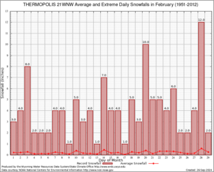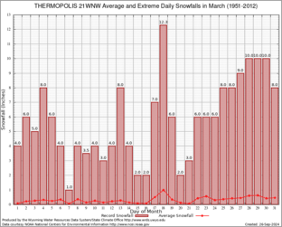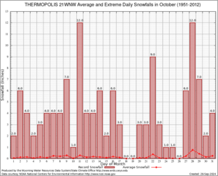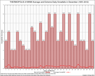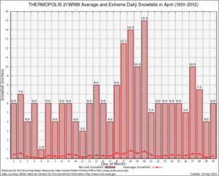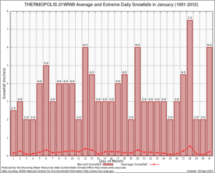THERMOPOLIS 21WNW (488888) Record Extreme and Average Daily Snowfall (1951-2012) See Here for Other Stations