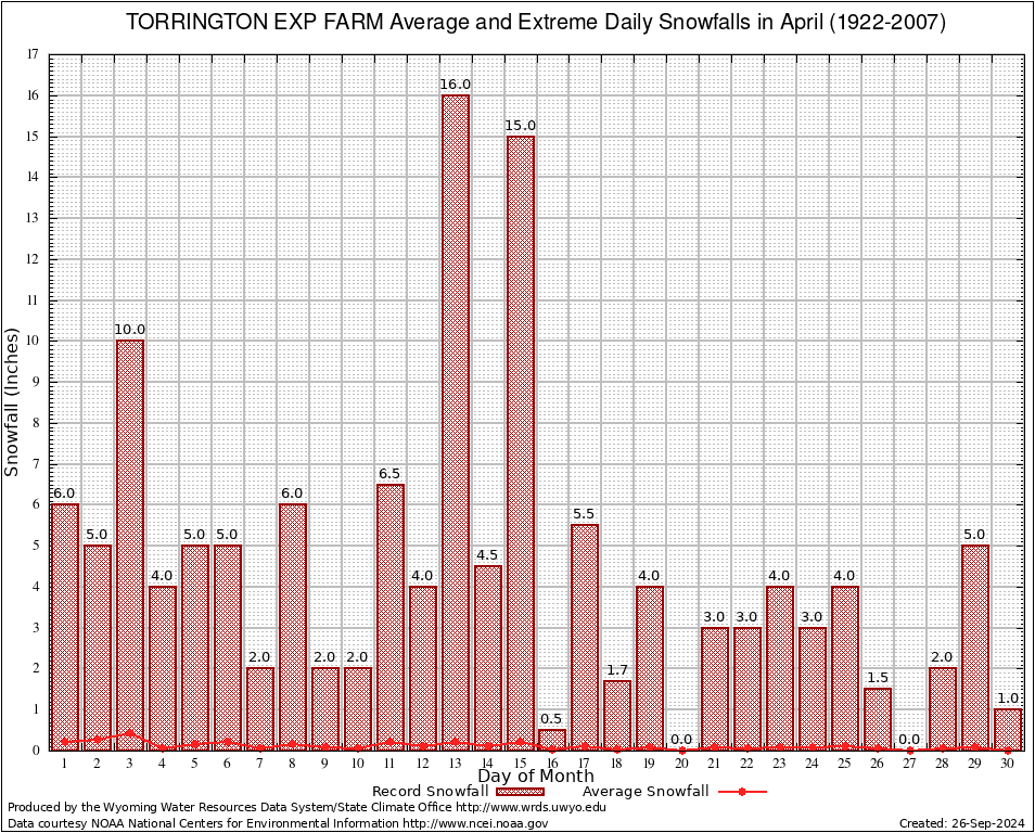 April Average and Extreme Daily Snowfall AMounts (1922-2007)