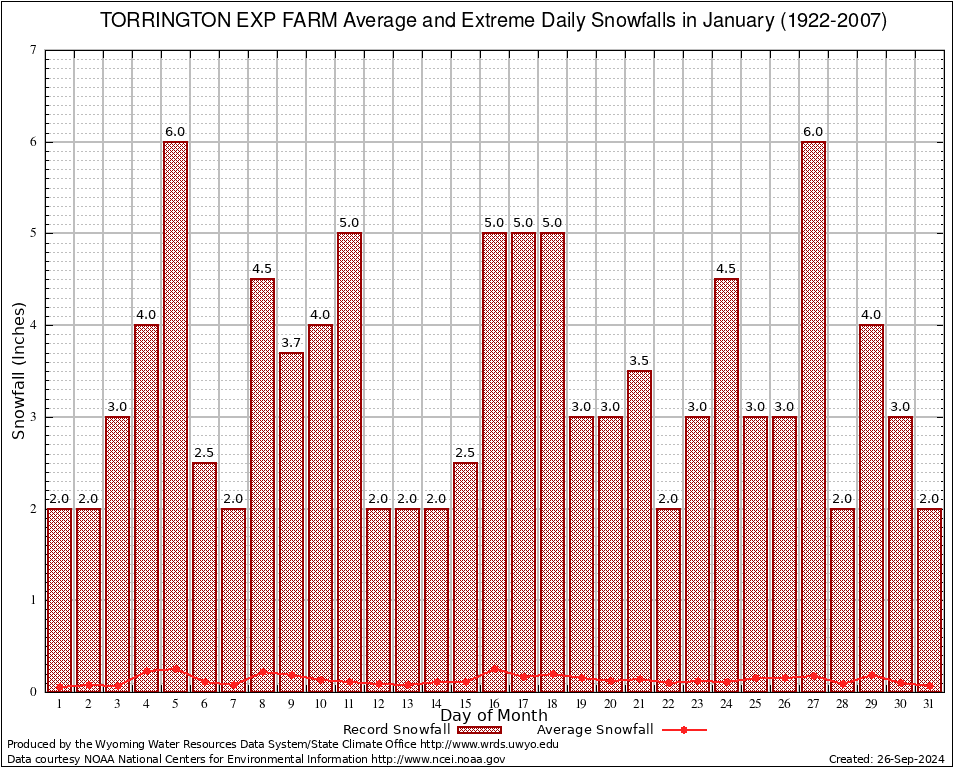January Average and Extreme Daily Snowfall AMounts (1922-2007)