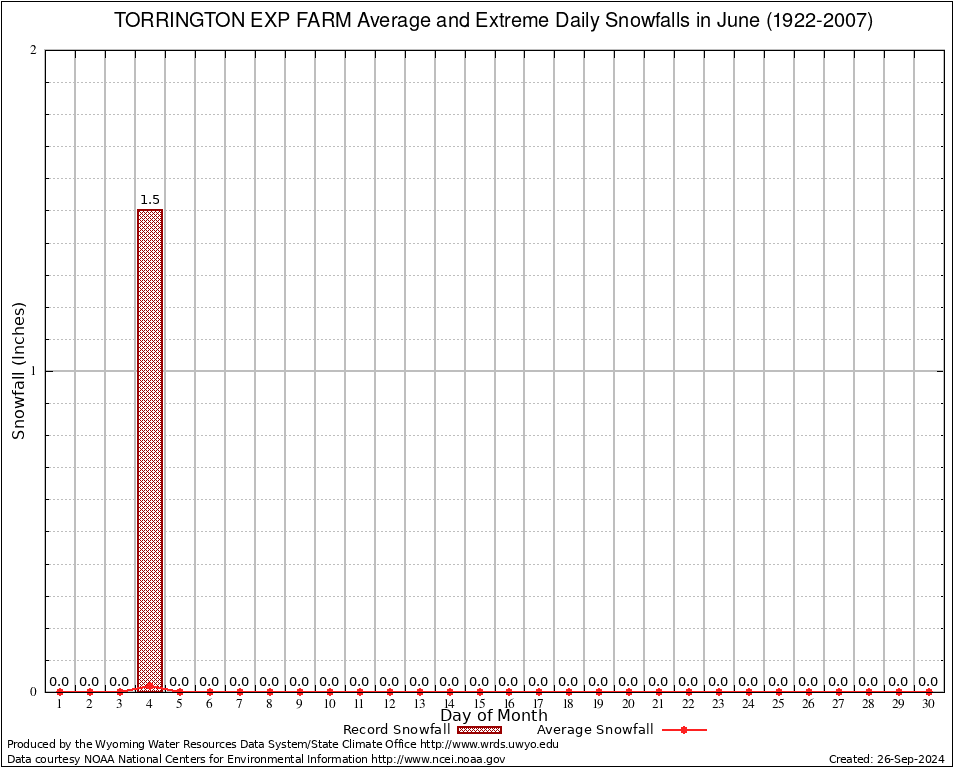 June Average and Extreme Daily Snowfall AMounts (1922-2007)