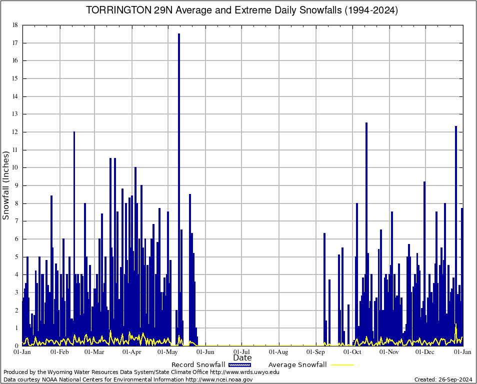 Annual Average and Extreme Daily Snowfall AMounts (1994-2024)