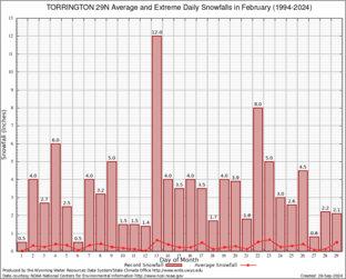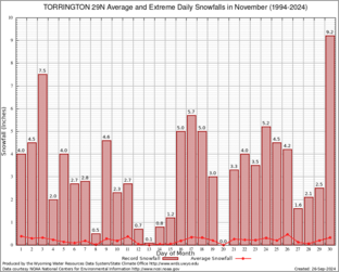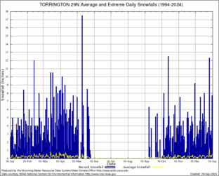 Record Extreme and Average Daily Snowfall (1994-2024)
