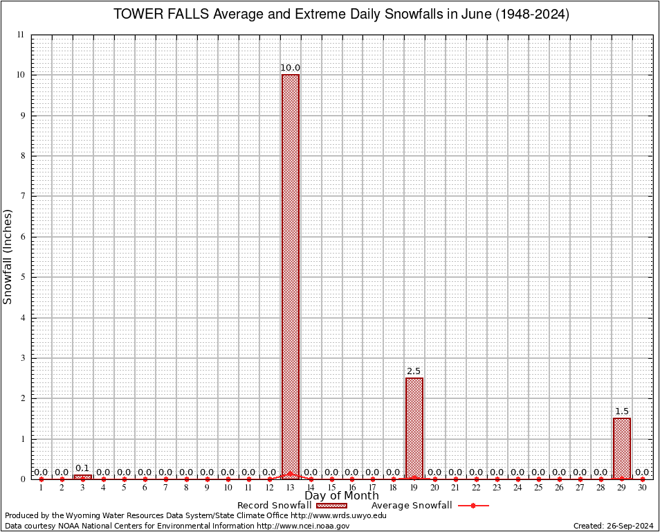 June Average and Extreme Daily Snowfall AMounts (1948-2024)