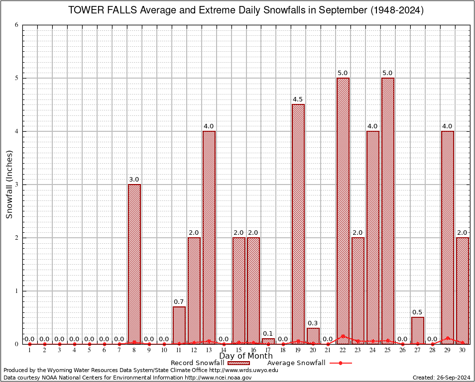 September Average and Extreme Daily Snowfall AMounts (1948-2024)