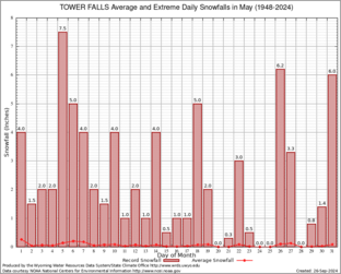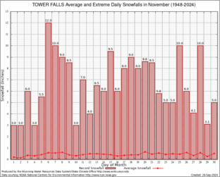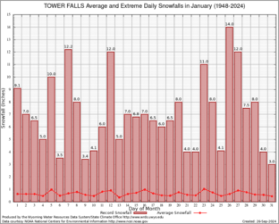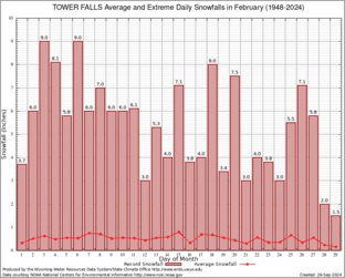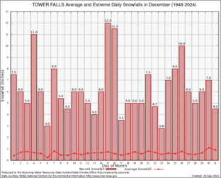 Record Extreme and Average Daily Snowfall (1948-2024)