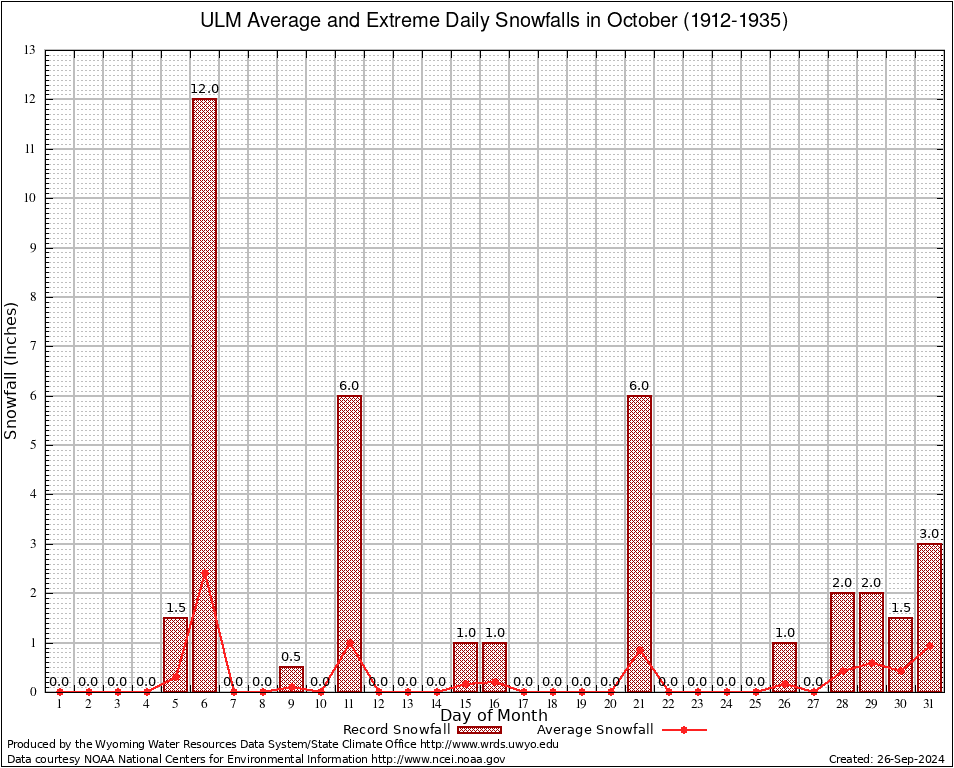ULM (489150) October Average and Extreme Daily Snowfall AMounts (1912-1935) To index page for ULM