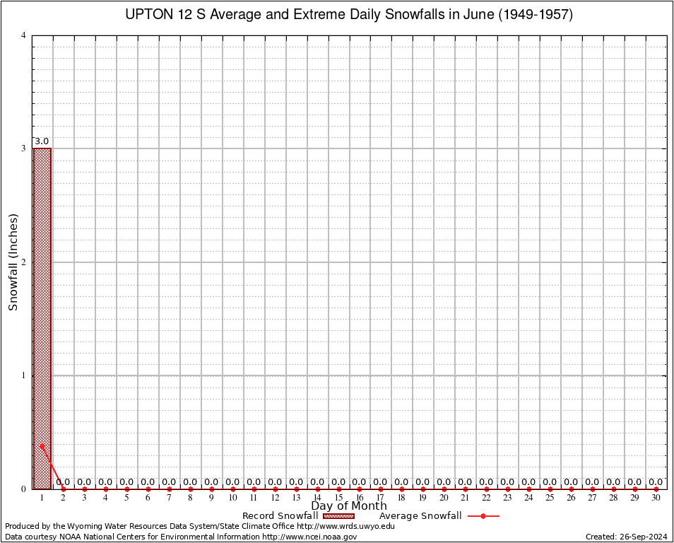 June Average and Extreme Daily Snowfall AMounts (1949-1957)