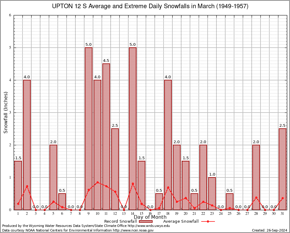 March Average and Extreme Daily Snowfall AMounts (1949-1957)