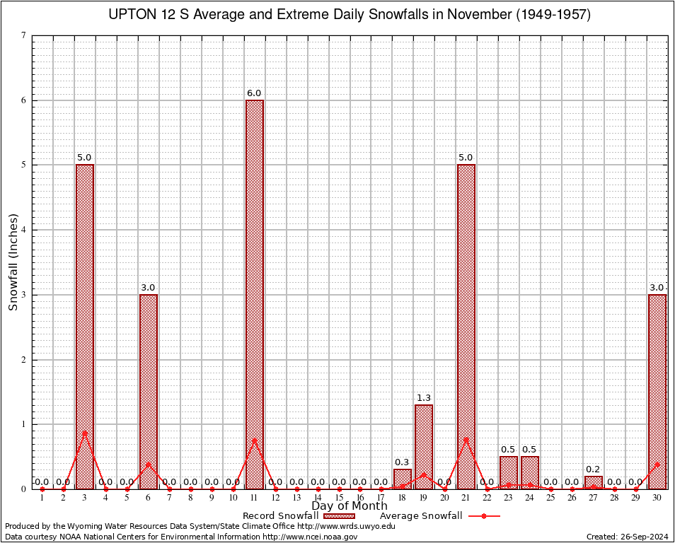 UPTON 12 S (489206) November Average and Extreme Daily Snowfall AMounts (1949-1957) To index page for UPTON 12 S