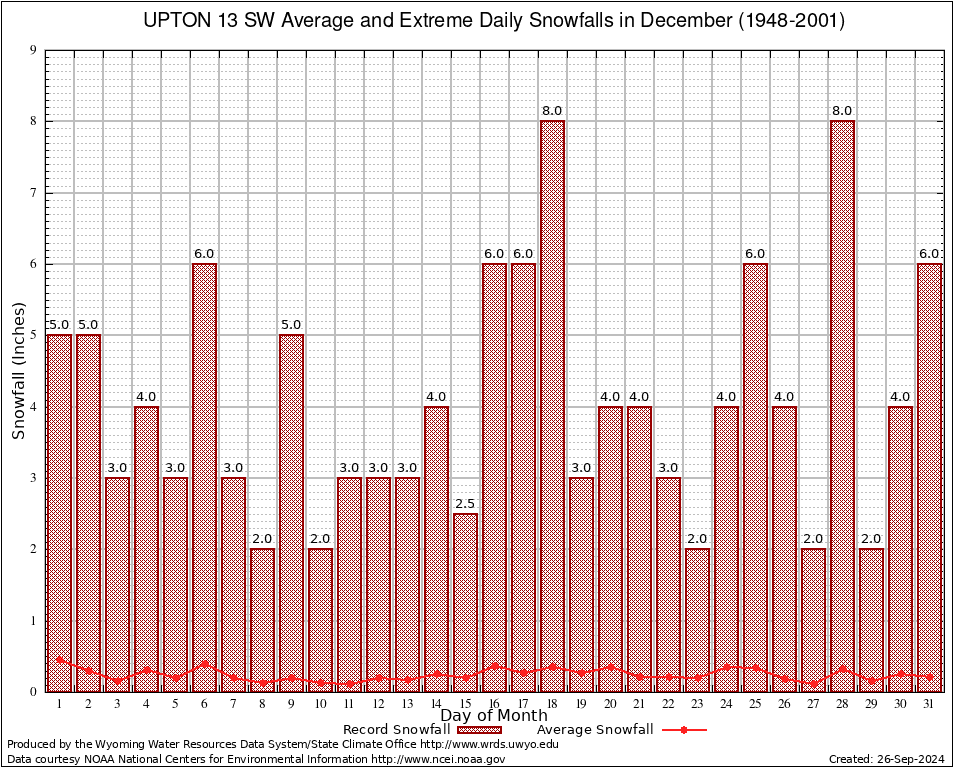 December Average and Extreme Daily Snowfall AMounts (1948-2001)