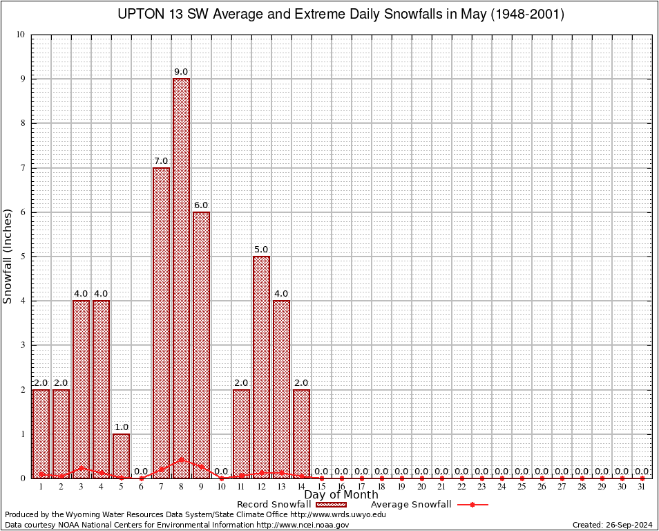May Average and Extreme Daily Snowfall AMounts (1948-2001)