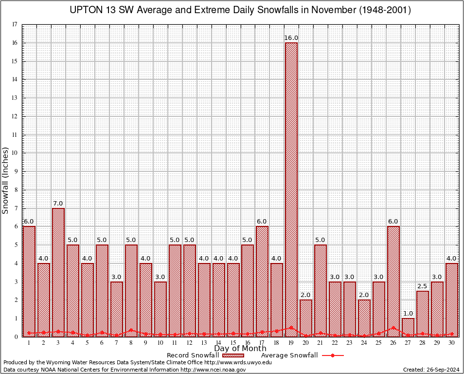 November Average and Extreme Daily Snowfall AMounts (1948-2001)