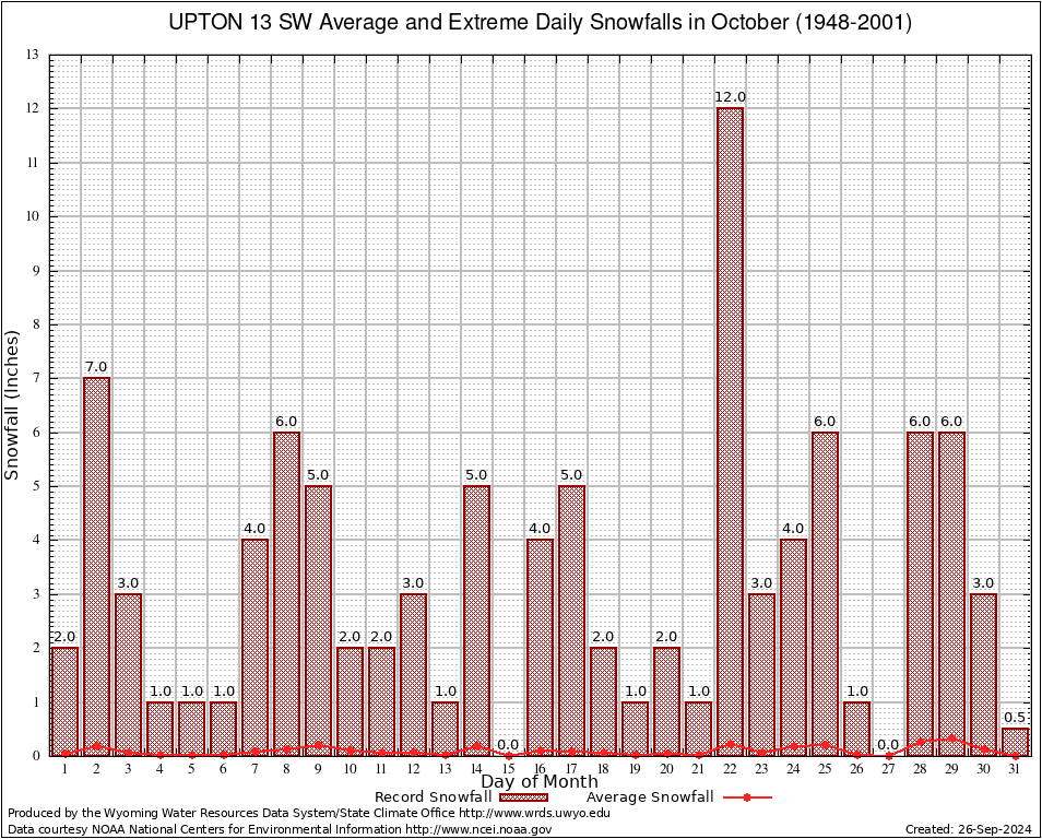 October Average and Extreme Daily Snowfall AMounts (1948-2001)