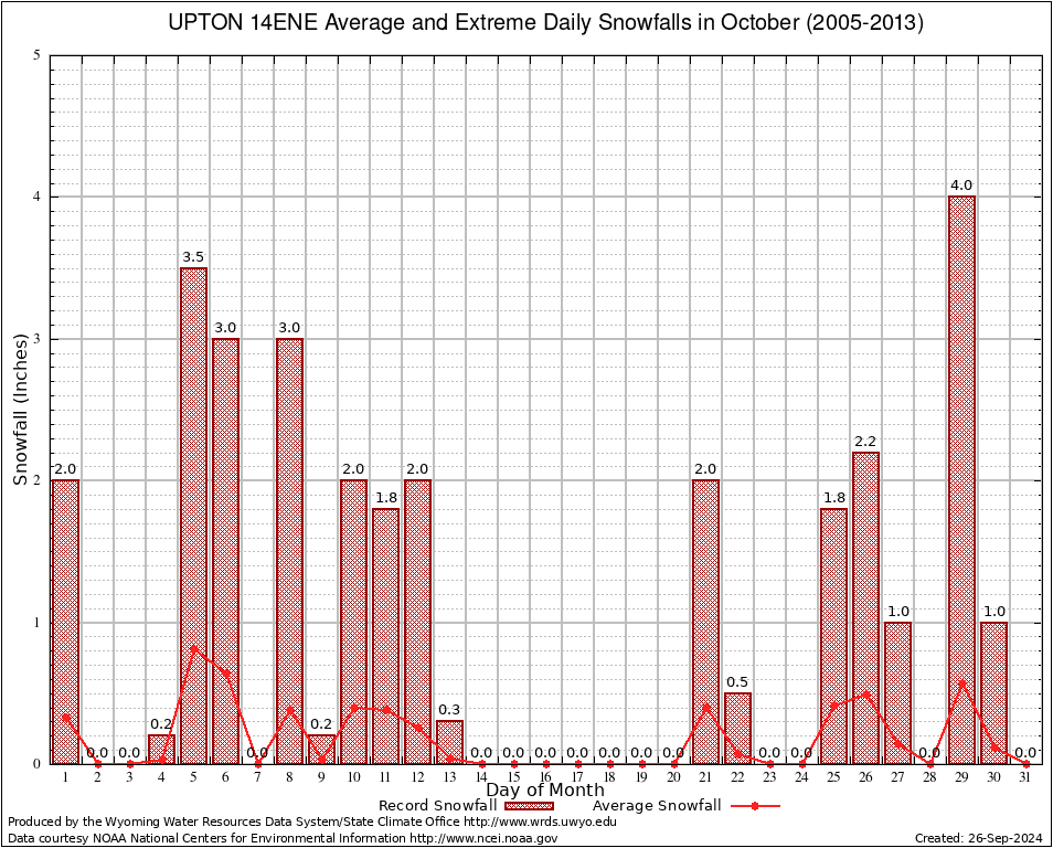 October Average and Extreme Daily Snowfall AMounts (2005-2013)