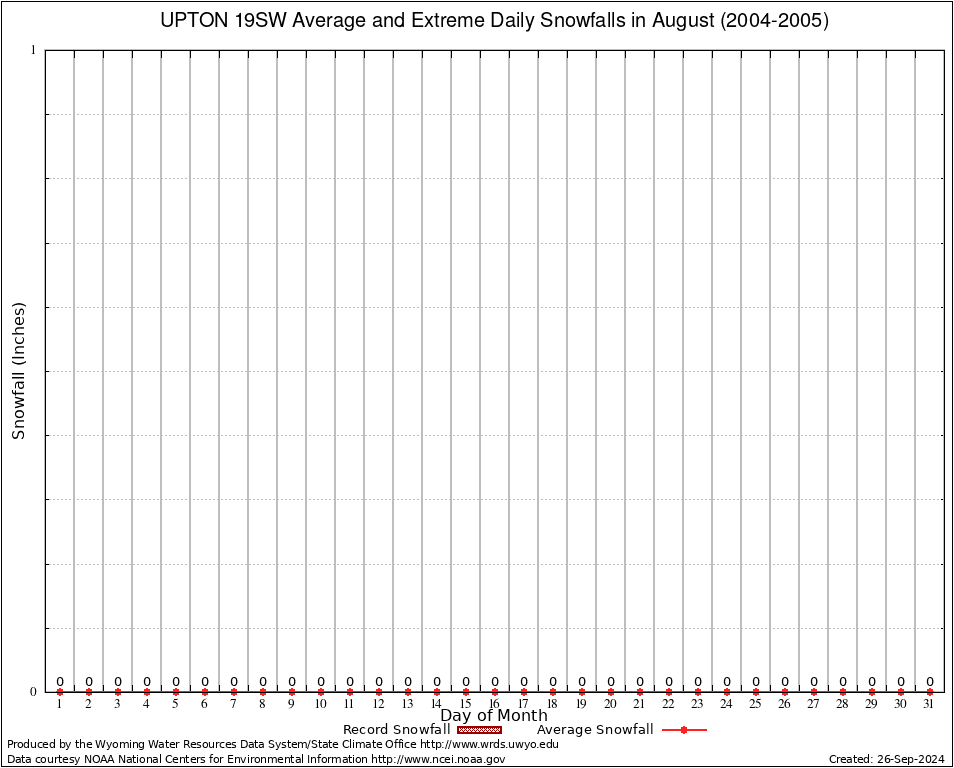 August Average and Extreme Daily Snowfall AMounts (2004-2005)