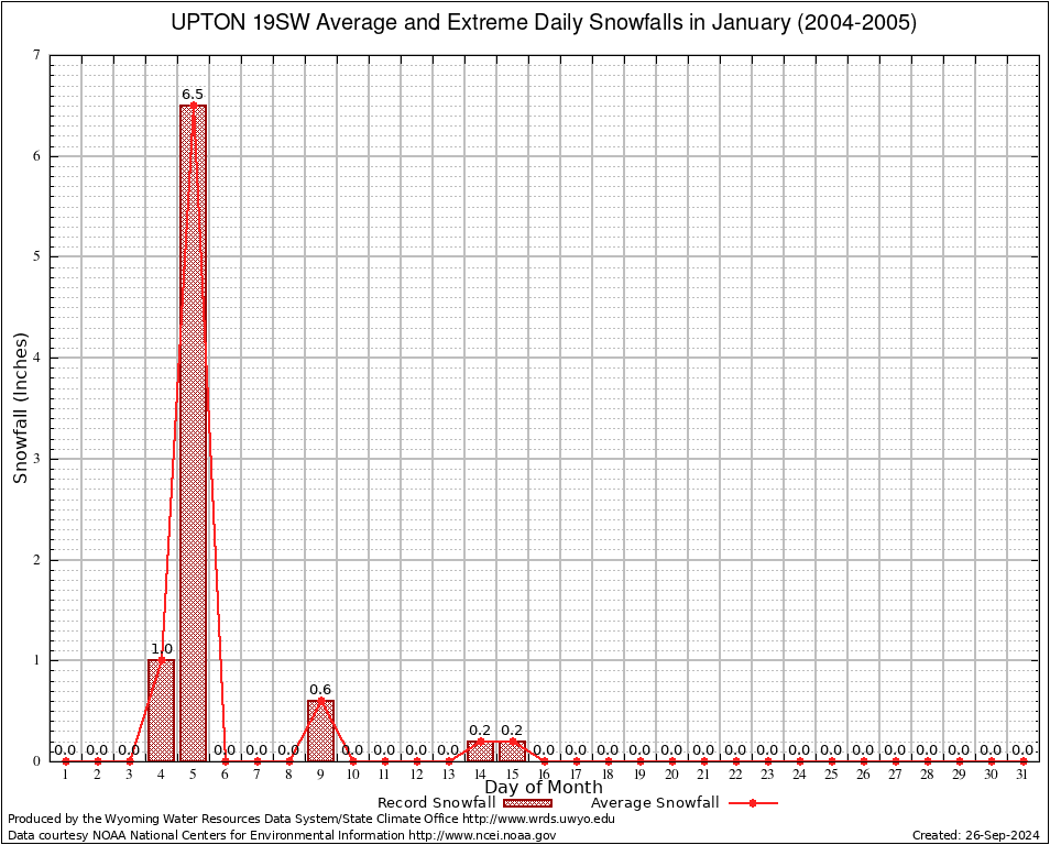 January Average and Extreme Daily Snowfall AMounts (2004-2005)