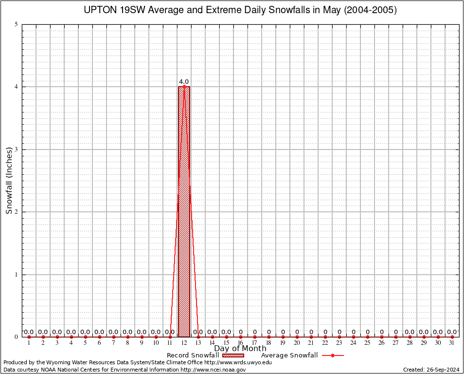 May Average and Extreme Daily Snowfall AMounts (2004-2005)