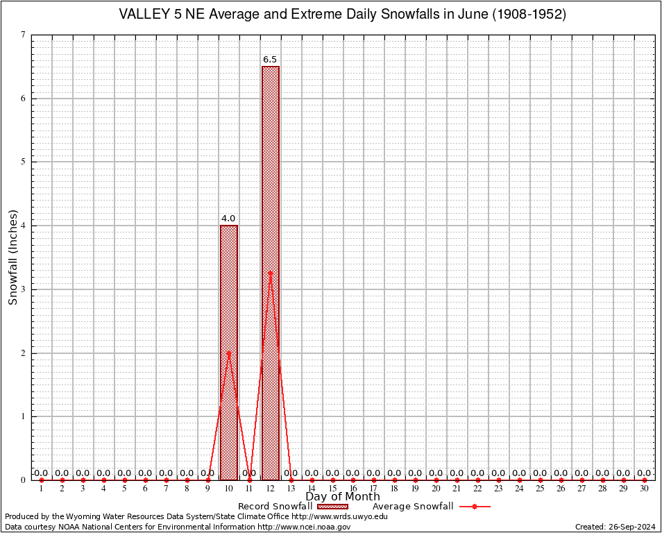 June Average and Extreme Daily Snowfall AMounts (1908-1952)