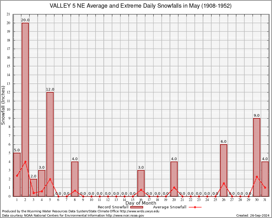 May Average and Extreme Daily Snowfall AMounts (1908-1952)