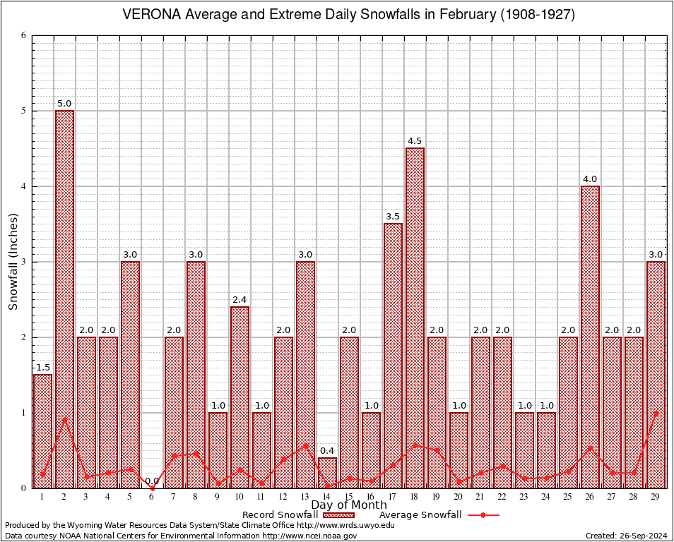 VERONA (489295) February Average and Extreme Daily Snowfall AMounts (1908-1927) To index page for VERONA