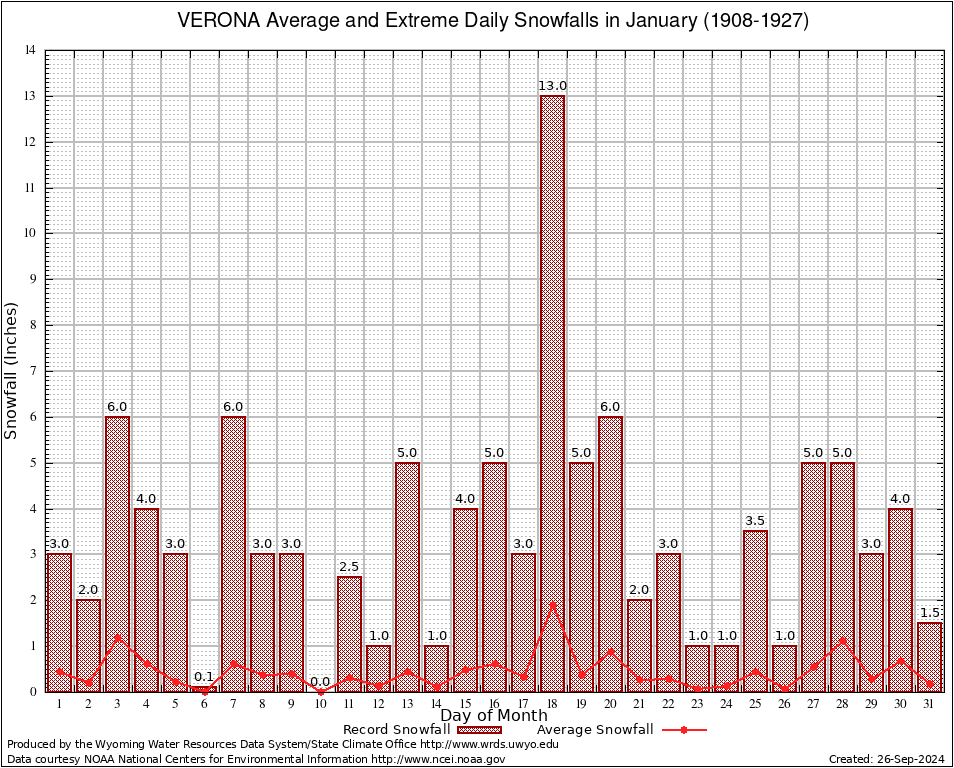 VERONA (489295) January Average and Extreme Daily Snowfall AMounts (1908-1927) To index page for VERONA