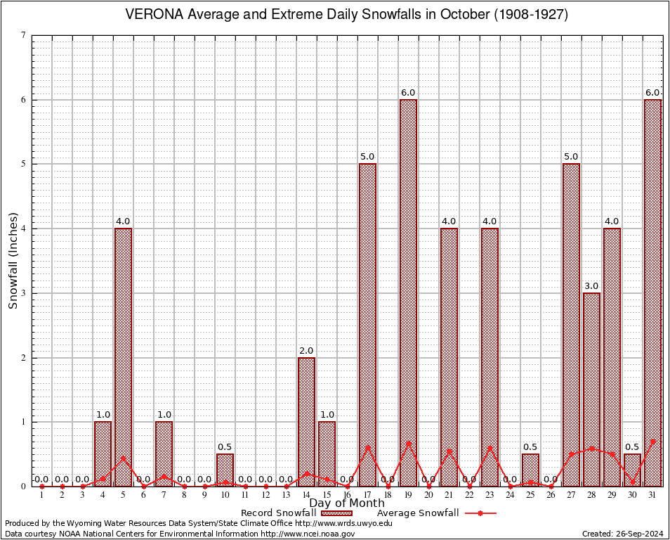 VERONA (489295) October Average and Extreme Daily Snowfall AMounts (1908-1927) To index page for VERONA