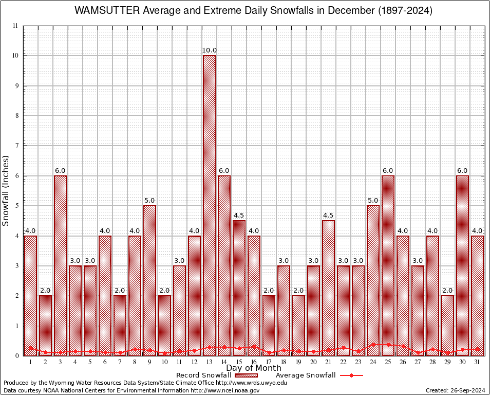 WAMSUTTER (489459) December Average and Extreme Daily Snowfall AMounts (1897-2024) To index page for WAMSUTTER