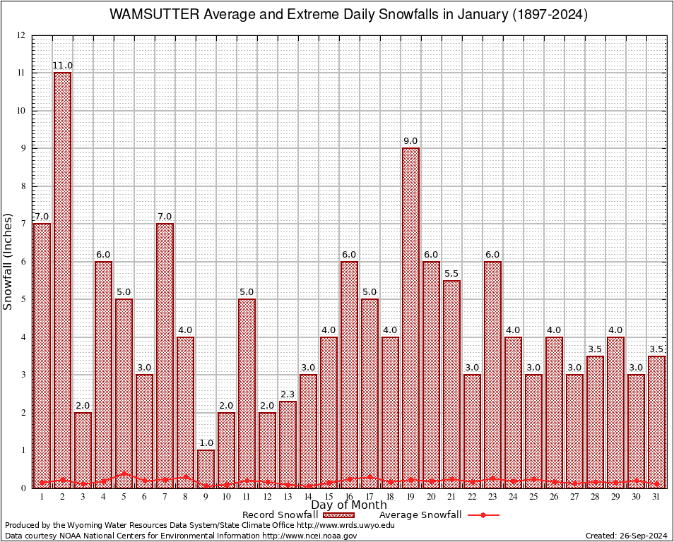 WAMSUTTER (489459) January Average and Extreme Daily Snowfall AMounts (1897-2024) To index page for WAMSUTTER