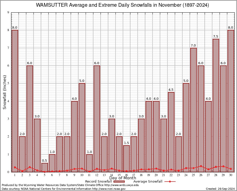 WAMSUTTER (489459) November Average and Extreme Daily Snowfall AMounts (1897-2024) To index page for WAMSUTTER