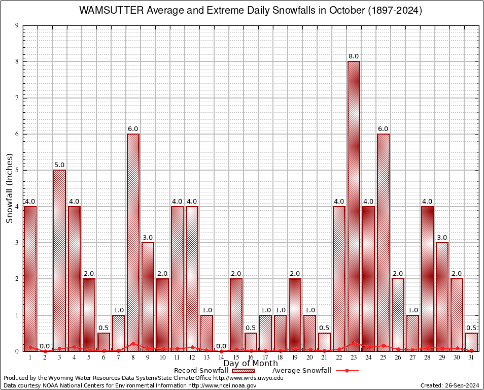 WAMSUTTER (489459) October Average and Extreme Daily Snowfall AMounts (1897-2024) To index page for WAMSUTTER