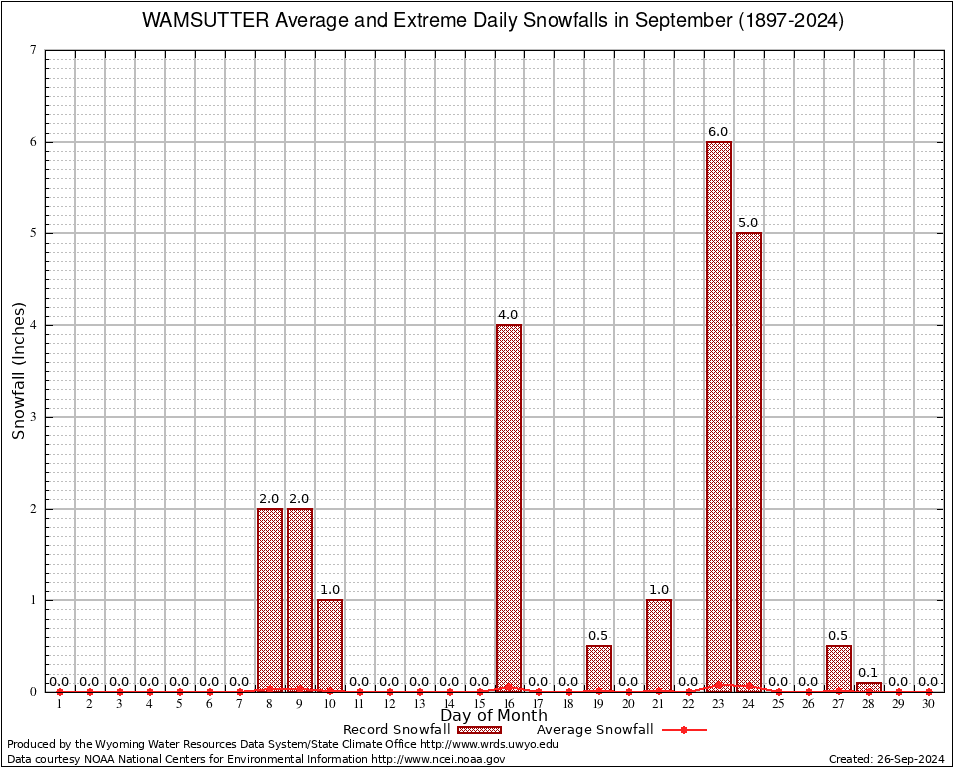 WAMSUTTER (489459) September Average and Extreme Daily Snowfall AMounts (1897-2024) To index page for WAMSUTTER
