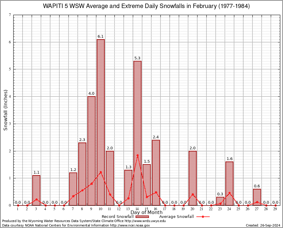 February Average and Extreme Daily Snowfall AMounts (1977-1984)