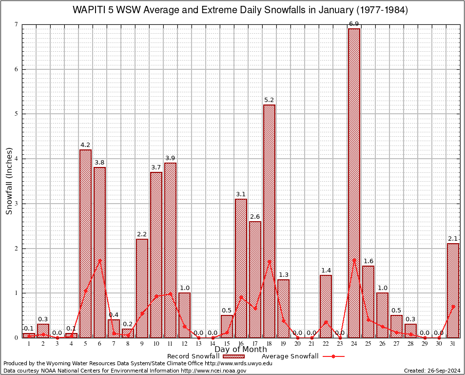 January Average and Extreme Daily Snowfall AMounts (1977-1984)