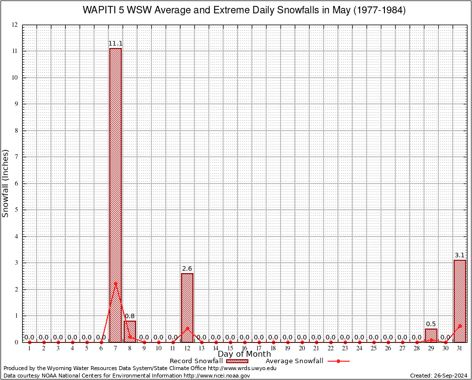 May Average and Extreme Daily Snowfall AMounts (1977-1984)