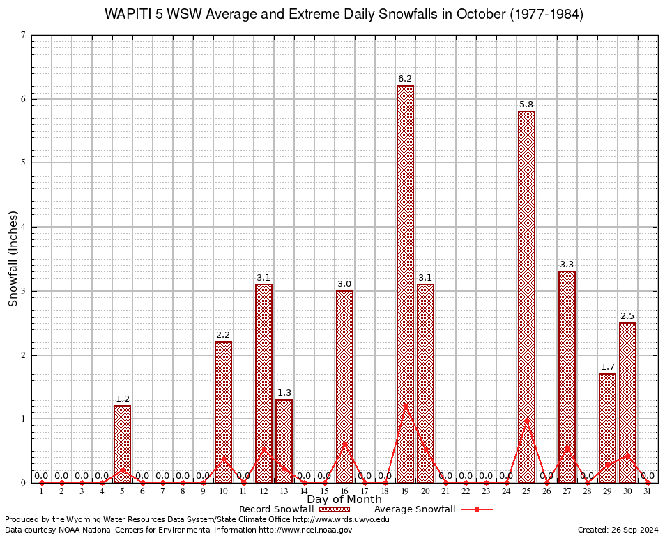 October Average and Extreme Daily Snowfall AMounts (1977-1984)