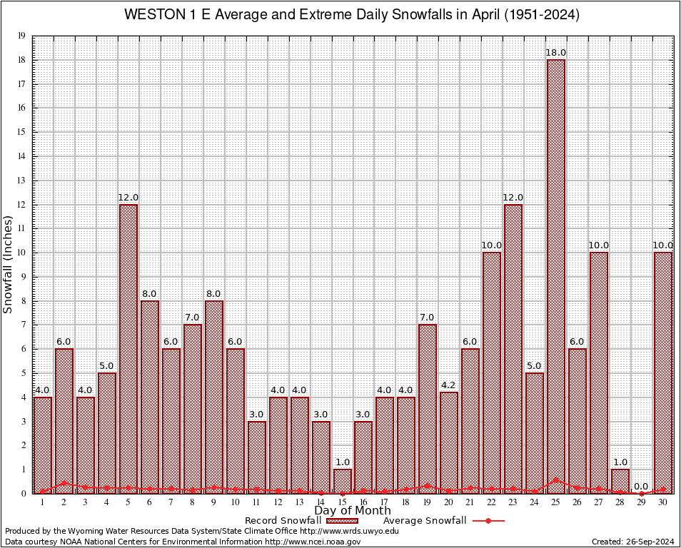 April Average and Extreme Daily Snowfall AMounts (1951-2024)