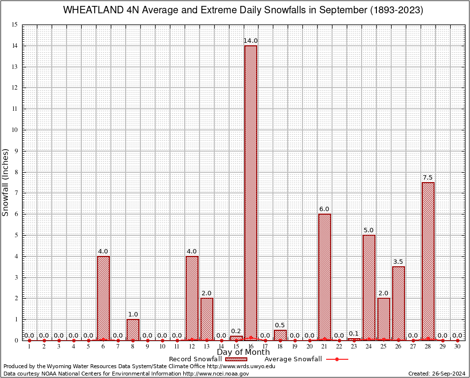 September Average and Extreme Daily Snowfall AMounts (1893-2023)