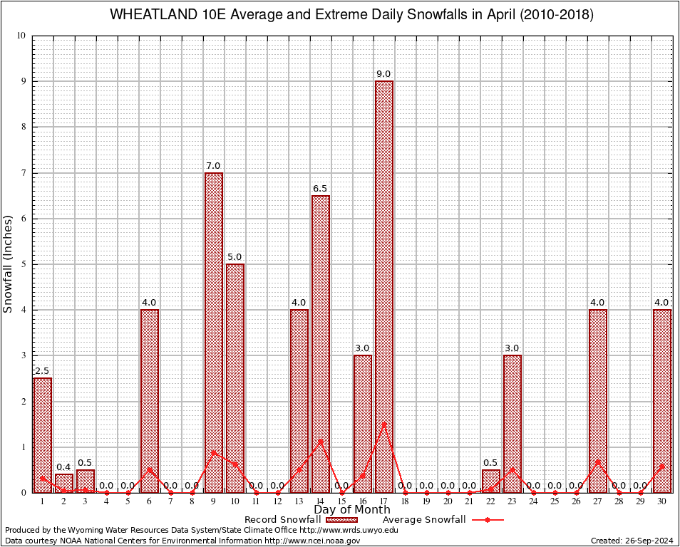 April Average and Extreme Daily Snowfall AMounts (2010-2018)