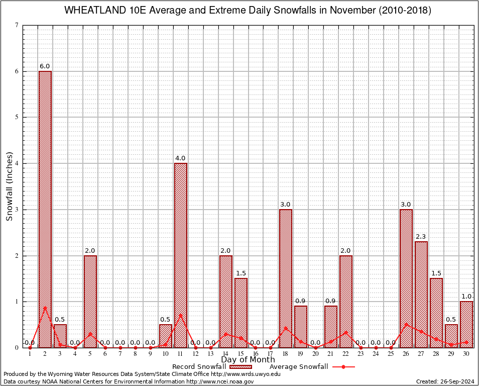 November Average and Extreme Daily Snowfall AMounts (2010-2018)