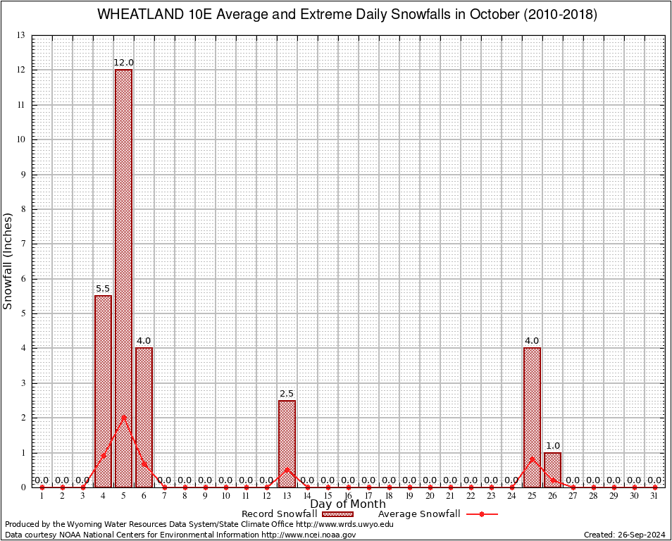 October Average and Extreme Daily Snowfall AMounts (2010-2018)
